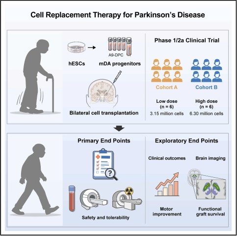 연세대 세브란스병원과 바이오기업 에스바이오메딕스 공동 연구팀은 이러한 한계를 넘기 위해 사람 배아줄기세포에서 도파민 신경세포만을 분화시켜 순도 높은 세포치료제를 만들고, 이 세포를 파킨슨병 진단 후 5년 이상 지난 환자 12명의 뇌에 직접 이식하는 임상시험을 진행했다.