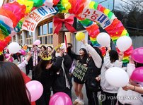 왕관을 쓴 3학년 수험생들이 교문 앞에 설치된 레드카펫 위를 천천히 걸어 나오자 교정 곳곳에서 함성이 터져 나왔다.