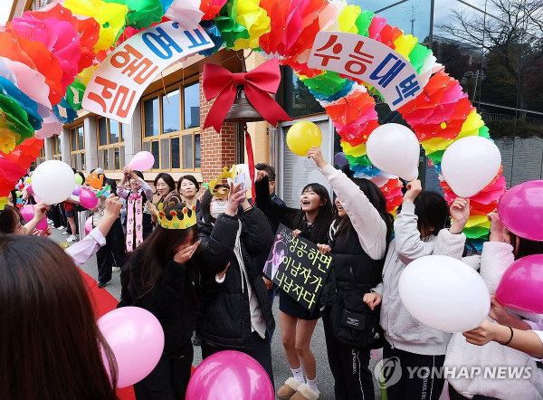 올해도 후배들이 에너지를 북돋는 간식을 건네고 교사들은 수험생 한 명 한 명을 포옹하며 "끝까지 최선을 다하라"고 격려할 예정이다.