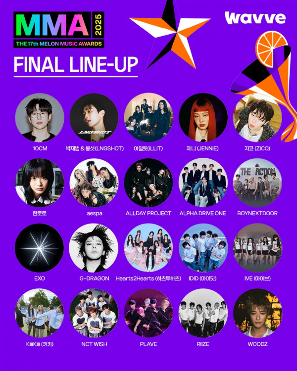 ▲ 온라인 동영상 서비스(OTT) 웨이브는 K팝 시상식 '2025 멜론뮤직어워드'(MMA2025)의 OTT 독점 중계권을 확보하고 다음 달 20일 오후 4시부터 레드카펫과 본식 1~3부를 무료 생중계한다. 카카오엔터테인먼트의 뮤직플랫폼 멜론(Melon)이 주최하는 MMA는 올해 가수 지드래곤, 제니, 박재범, 엑소(EXO), 아이브(IVE), 보이넥스트도어(BOYNEXTDOOR), 라이즈(RIIZE), 엔시티 위시(NCT WISH), 아일릿(ILLIT) 등이 참여한다. 웨이브는 'MMA2025' OTT 독점 무료 생중계를 기념해 다음 달 7일까지 인스타그램 팔로우와 친구 태그 등을 통한 시상식 티켓 추첨 이벤트도 진행한다.