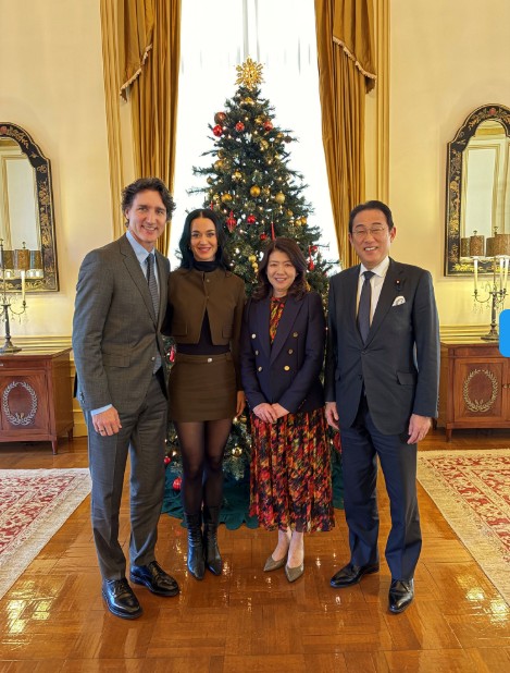 쥐스탱 트뤼도 전 캐나다 총리가 연인 사이로 알려진 미국 팝스타 케이티 페리와 일본을 방문해 기시다 후미오 전 일본 총리 부부와 만났다.